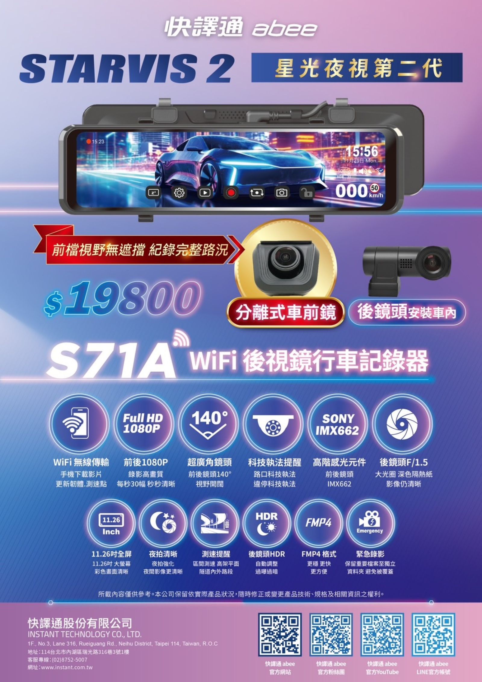 (STARVIS 2 星光夜視 / 11.26吋全屏 / 分離式車前鏡)